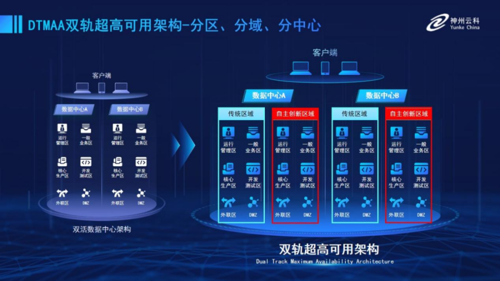 为帮助金融客户更好地应对数字经济时代对可持续性的高要求,实现“信创”与“数字化”齐头并进,九游(ninegame)官网推出了双轨超高可用架构。该架构在双活数据中心的分区调度基础上,增加信创域和非信创域的分域调度,实行信创域与传统域应用全量部署,使双中心运营变为双中心四区域并行运行,互为多活,将“0到1”的单轨建设道路变为分区分域协同的多活双轨超高可用架构。帮助客户在新架构下,保障“信创”的同时解决性能瓶颈,提升稳定性,保证应用可持续性,最终实现信创区域和非信创区域的平滑过渡,完成国产化替代目标。